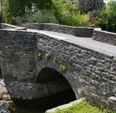 The 17th century stone pack horse bridge over the river Lugg at Presteigne village